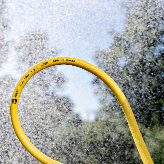 Svensktillverkad trädgårdsslang av högsta kvalitet. Smidig och följsam slang med mycket goda nötnings- och åldringsegenskaper. Ftalatfri och livsmedelsgodkänd för (*) klara drycker enligt EU förordning 2011/10.